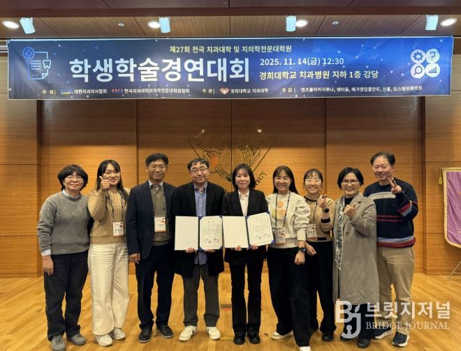 브릿지저널 김경미 기자 | 전남대학교 치의학전문대학원 학생들이 ‘제27회 전국 치과대학 및 치의학전문대학원 학생학술경연대회’에서 대상과 동상을 동시에 수상하며 기초·임상 치의학 연구 역량을 전국적으로 인정받았다.
