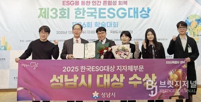 브릿지저널 김경미 기자 | 성남시는 ‘제3회 한국 이에스지(ESG) 대상’ 시상식에서 지방자치단체 이에스지(ESG) 부문 대상을 받았다고 11일 밝혔다.