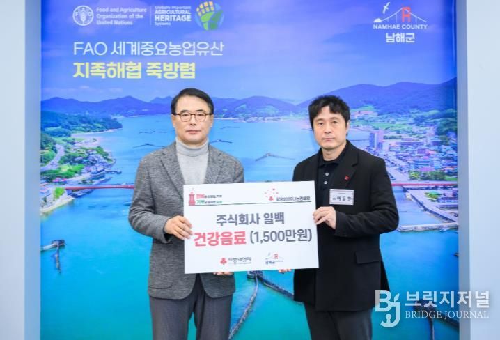 주식회사 일백은 2020년부터 올해까지 총 11회, 누적 1억 5,800만원 상당의 건강음료를 꾸준히 지원하며 남해군의 대표나눔 기업으로 자리매김하고 있다.