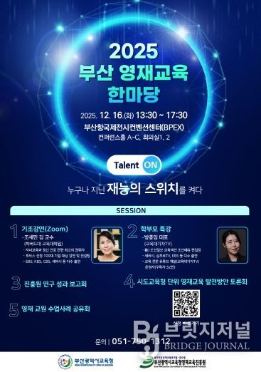 브릿지저널 윤나영 기자 | 부산광역시교육청영재교육진흥원(원장 진병화)은 오는 16일 부산항국제전시컨벤션센터(BPEX)에서 교육공동체를 대상으로 ‘2025 부산 영재교육 한마당’을 개최한다.