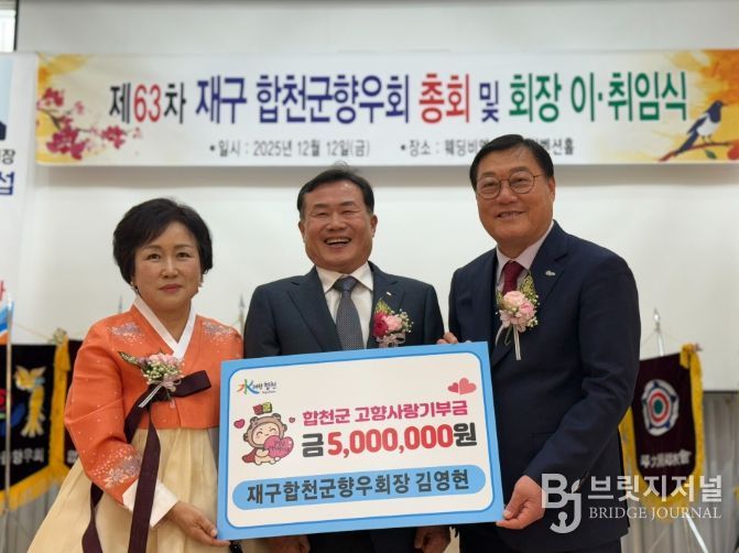 브릿지저널 김경미 기자 | 합천군은 12일 대구 달서구 웨딩비엔나 컨벤션홀에서 열린 재구합천군향우회 정기총회에서 출향인들의 고향사랑기부금 기탁식이 진행됐다고 밝혔다.