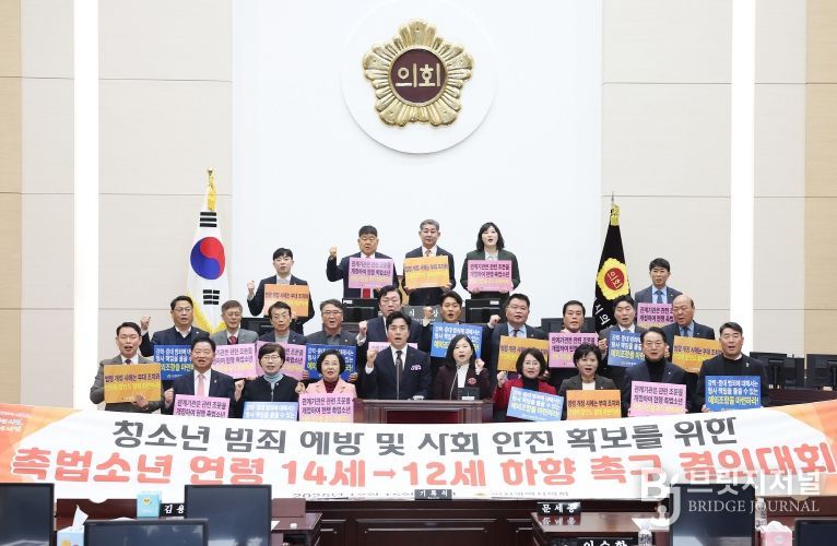 브릿지저널 김경미 기자 | 인천광역시의회는 15일 제305회(제2차 정례회) 제3차 본회의에서 이강구 의원(국·연수구5)이 대표 발의한 ‘청소년 범죄 예방 및 사회 안전 확보를 위한 촉법소년 연령 하향 촉구 결의안’을 의결한 후 본회의장에서 촉법소년 연령 하향 촉구 결의대회를 개최했다.