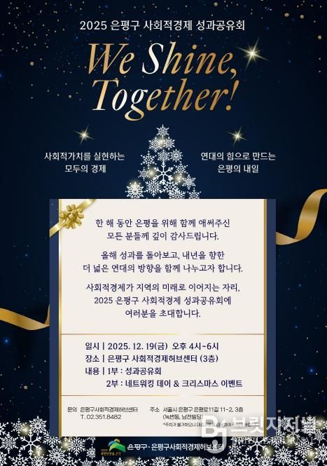 브릿지저널 김경미 기자 | 서울 은평구는 오는 19일 은평구사회적경제허브센터에서 ‘2025년 사회적경제 성과공유회‘를 개최한다고 밝혔다.