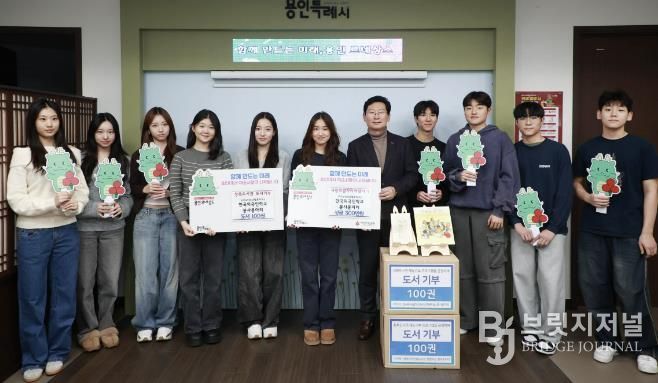 브릿지저널 김경미 기자 | 용인특례시는 15일 시장실에서 성복도서관 재능기부 프로그램에 참여 중인 한국외국인학교(KIS) 봉사동아리 벌룬타스(Voluntas)로부터 성금 300만원과 도서 100권을 전달받았다고 16일 밝혔다.