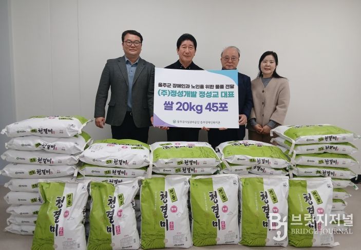 브릿지저널 윤나영 기자 | 울주군시설관리공단(이사장 최인식) 중부장애인복지관은 12월 16일, ㈜정성개발(대표 정성교)로부터 백미 20kg 45포를 후원받아 전달식을 진행했다.