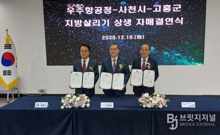 브릿지저널 김경미 기자 | 고흥군은 16일 경남 사천시 우주항공청사에서 우주항공청, 사천시와 함께 지방 살리기 상생 자매결연 업무협약(MOU)을 체결하고, 지속 가능한 지역 상생발전과 균형발전을 위한 협력체계를 구축하기로 했다고 밝혔다.