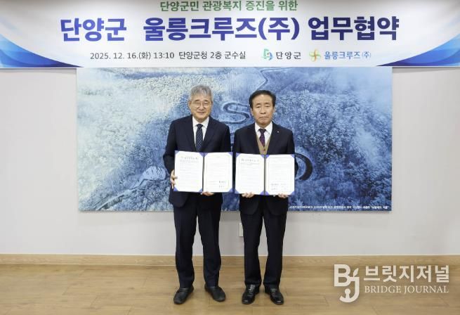 브릿지저널 김경미 기자 | 충북 단양군은 지난 16일 울릉크루즈(주)와 업무협약(MOU)을 체결하고, 군민을 대상으로 한 울릉도 여행 요금 할인 혜택을 추진한다고 밝혔다.