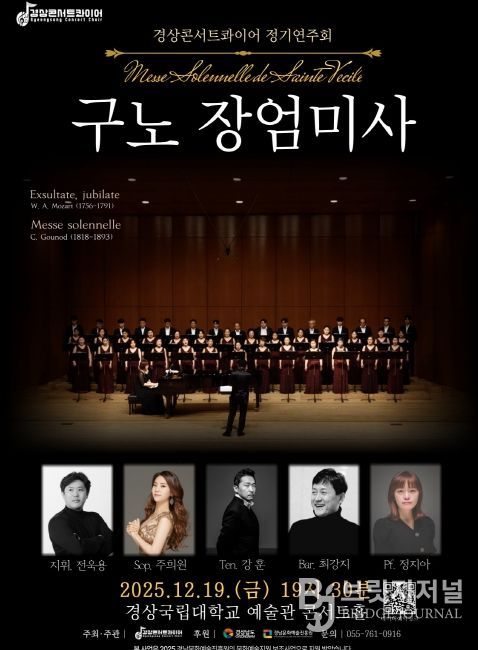 브릿지저널 김경미 기자 | 경상콘서트콰이어가 송년 음악회 구노 〈장엄미사〉를 12월 19일 오후 7시 30분 경상국립대학교 예술관 콘서트홀에서 개최한다.