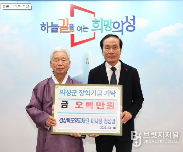 브릿지저널 정보영 기자 | 재단법인 의성군인재육성재단(이사장 김주수 의성군수)은 지난 12월 10일 경상북도 향교재단 정상영 이사장이 의성군 인재 육성을 위해 장학금 500만 원을 기탁했다고 밝혔다.