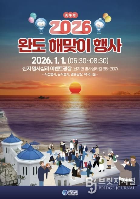 브릿지저널 김경미 기자 | 완도군은 내년 1월 1일 오전 6시 30분부터 8시 30분까지 신지 명사십리 이벤트 광장에서 ‘병오년(丙午年) 해맞이 행사’를 개최한다.