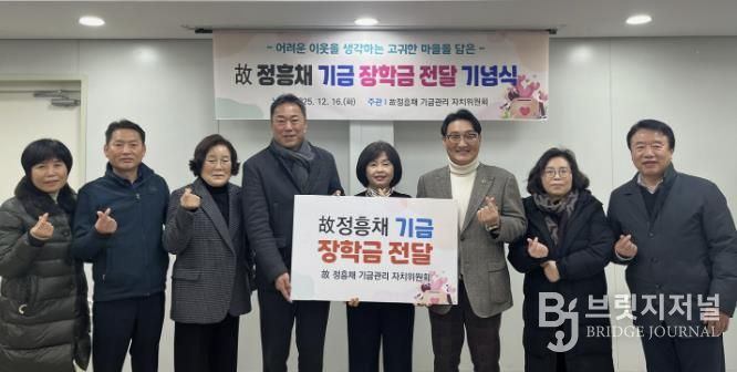 브릿지저널 김경미 기자 | 수원시 팔달구 매교동은 지난 16일, 어려운 이웃을 생각하는 고귀한 뜻을 담아 매교동 행정복지센터 대회의실에서 ‘故 정흥채 장학금 전달 기념식’을 개최했다.