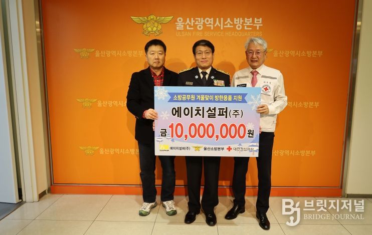 이날 에이치설퍼㈜가 기부한 방한용품은 대한적십자사를 통해 울산소방소속 현장 소방공무원 전원에게 전달될 예정이다.
