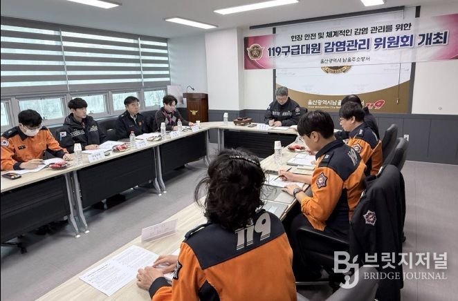 브릿지저널 윤나영 기자 | 울산 남울주소방서는 12월 17일 오전 10시 소방서 2층 소회의실에서 ‘2025년 하반기 감염관리위원회’를 개최해 구급대원의 건강·안전 확보를 위한 심층적인 감염관리 방안과 대책을 논의한다고 밝혔다.