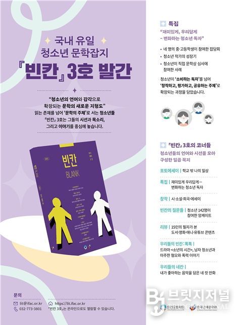 브릿지저널 김경미 기자 | 인천문화재단 한국근대문학관은 국내 유일의 청소년 문학잡지 [빈칸] 3호를 발간했다.