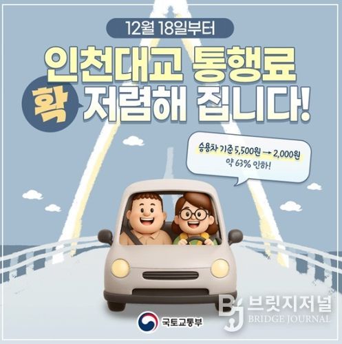 브릿지저널 김경미 기자 | 12월 18일부터 인천대교 통행료 확 저렴해 집니다!