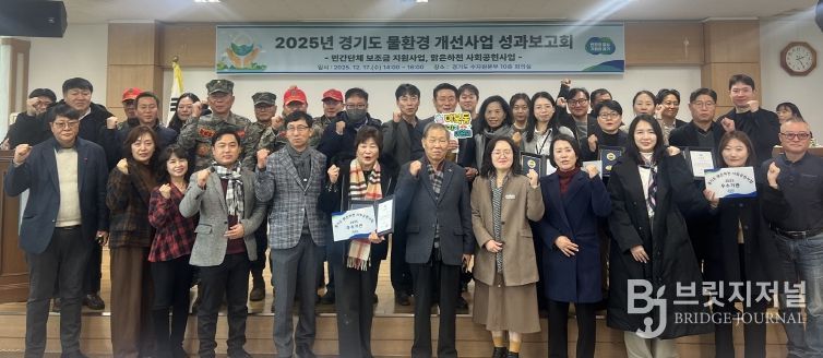 브릿지저널 김경미 기자 | 경기도수자원본부는 올 한 해 물환경 개선 사업 성과를 공유하고 단체 간 교류의 장을 마련하고자 17일 ‘2025년 경기도 물환경 개선사업 성과보고회’를 개최했다.