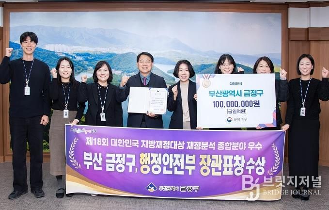 브릿지저널 윤나영 기자 | 부산시 금정구는 12월 16일 정부세종청사에서 열린 '2025 대한민국 지방재정대상(행정안전부 주관)'시상식에서 재정분석 종합 분야 ‘최우수’기관으로 선정되어 행정안전부 장관 표창과 특별교부세 1억 원을 확보했다고 18일 밝혔다.