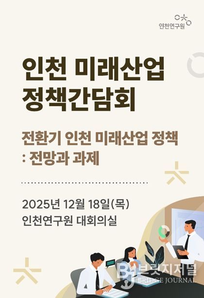 브릿지저널 김경미 기자 | 인천연구원은 2025년 12월 18일 오전 10시, 인천연구원 대회의실에서 '인천 미래산업 정책간담회'를 개최한다.