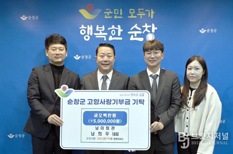 브릿지저널 윤나영 기자 | 순창군은 18일 정읍 소재 남미회관 남희우 대표가 순창군에 고향사랑기부금 500만원을 기탁했다고 밝혔다.