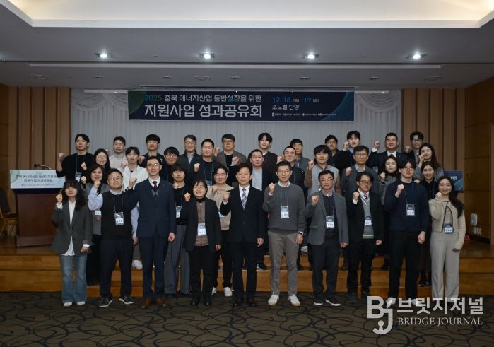 브릿지저널 김경미 기자 | 충북도는 18일 단양 소노벨에서 ‘2025 충북 에너지기업 동반성장을 위한 지원사업 성과공유회’를 열고, 도·시군, 한국동서발전, 한국에너지공단 세종충북지역본부, 한국전력 충북본부 등 에너지 유관기관 및 참여기업 관계자 50여 명과 에너지기업 지원사업의 성과를 공유했다.