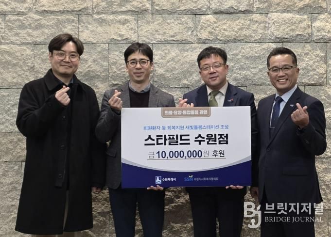 브릿지저널 김경미 기자 | 스타필드 수원점이 “의료·요양·통합돌봄 관련 새빛돌봄스테이션 조성을 위해 사용해달라”며 기부금 1000만 원을 수원시에 기부했다.