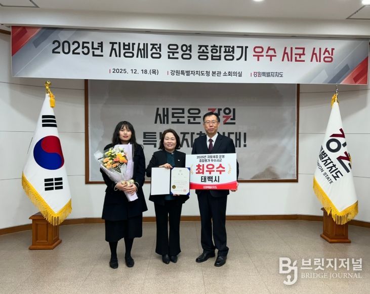브릿지저널 윤나영 기자 | 태백시는 강원특별자치도가 실시한 ‘2025년 지방세정 운영 종합평가’에서 2년 연속 최우수 시·군으로 선정됐다고 밝혔다.