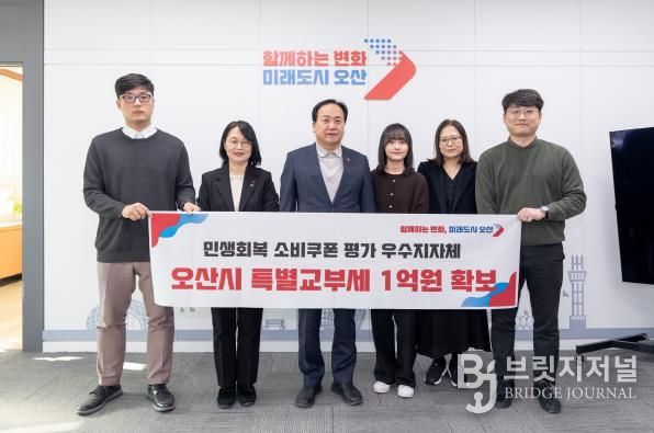 브릿지저널 김경미 기자 | 오산시가 행정안전부가 주관한 민생회복 소비쿠폰 집행 평가에서 ‘우수 지자체’로 선정돼 특별교부세 1억 원을 확보했다.