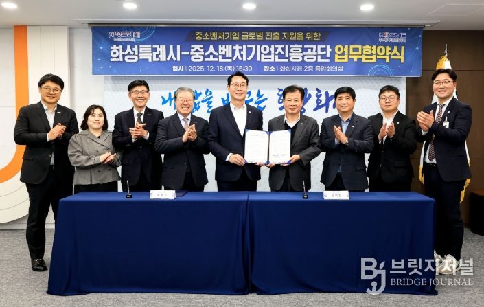 브릿지저널 김경미 기자 | 화성특례시가 지난 18일 중소벤처기업진흥공단과 관내 중소기업의 글로벌 진출 지원을 위한 ‘수출물류지원사업 업무협약’을 체결했다.
