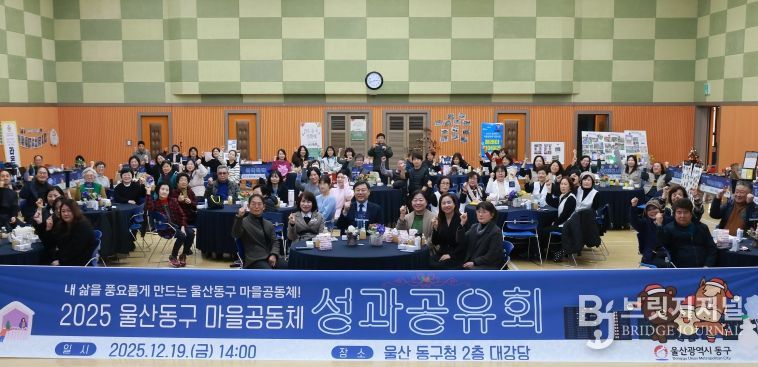 브릿지저널 윤나영 기자 | 울산 동구는 12월 19일 오후 2시 구청 2층 대강당에서 2025년 마을공동체 성과공유회를 개최하고 한 해 동안의 마을공동체 활동 성과를 공유하는 뜻깊은 시간을 가졌다.
