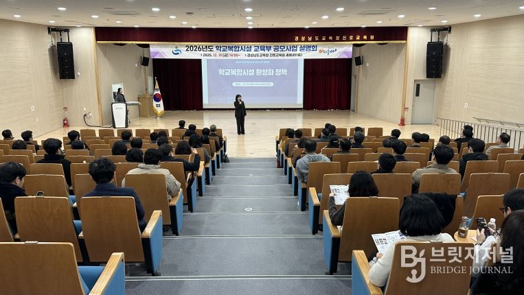 브릿지저널 김경미 기자 | 경상남도교육청은 19일 경상남도교육청 진로교육원에서 지방자치단체와 교육지원청, 학교 관계자 100여 명을 대상으로 ‘2026년도 학교복합시설 교육부 공모사업 설명회’를 열었다.