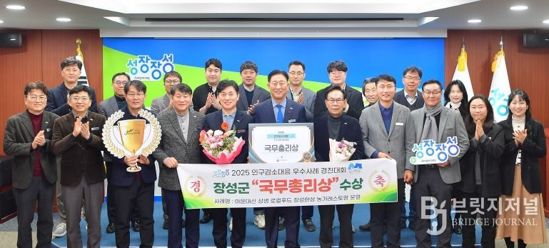 브릿지저널 김경미 기자 | 장성군이 18일 정부세종청사에서 열린 행정안전부 ‘지자체 인구감소대응 우수사례 경진대회’에서 ‘장성한상’ 운영 사례를 발표해 국무총리상을 수상했다.