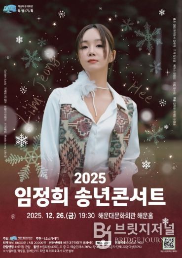 브릿지저널 윤나영 기자 | 해운대문화회관은 오는 12월 26일 오후 7시 30분, 해운대문화회관 해운홀에서 송년 특별기획 공연인 ‘2025 임정희 송년콘서트’를 개최한다.
