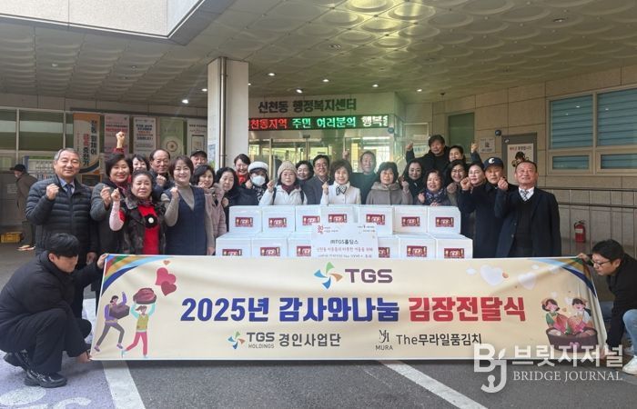 브릿지저널 김경미 기자 | ㈜TGS홀딩스 경인사업단은 지난 12월 19일 신천동 행정복지센터에 김장 김치 500kg을 전달하며 연말을 맞아 지역사회 나눔에 동참했다.