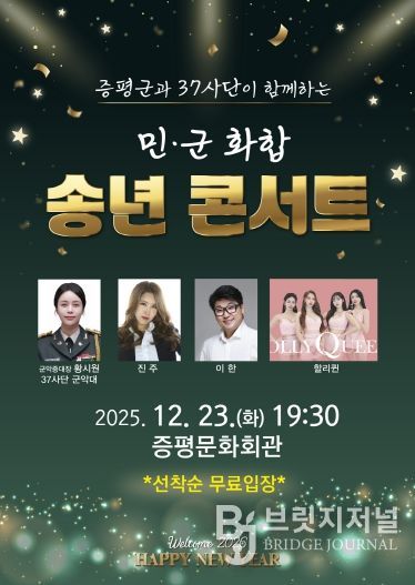 브릿지저널 김경미 기자 | 충북 증평군은 오는 12월 23일 오후 7시 30분, 증평문화회관에서 민과 군(軍이) 함께 어우러지는‘민·군화합 송년콘서트’를 개최한다.