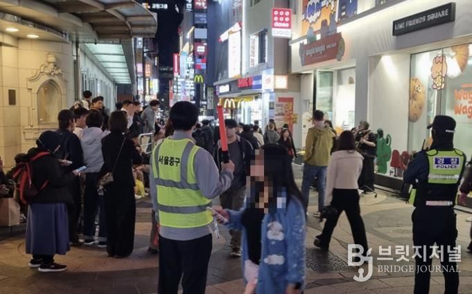 브릿지저널 김경미 기자 | 서울 중구는 다가오는 크리스마스와 명동스퀘어에서 처음 열리는 새해맞이 ‘글로벌 카운트다운’ 행사를 앞두고, 오는 1월 4일까지 명동 일대 안전관리에 총력을 기울인다. 매년 연말마다 대규모 인파가 몰리는 명동에서 시민과 관광객들이 안심하고 연말 분위기를 즐길 수 있도록 선제 대응에 나선 것.