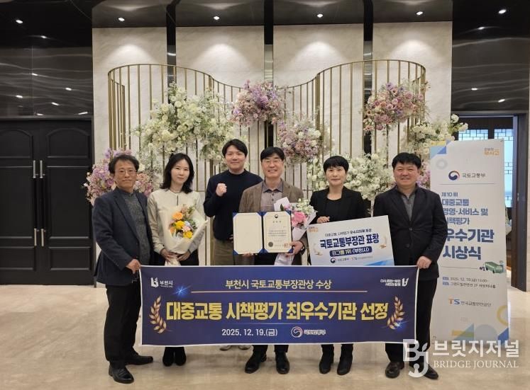 브릿지저널 김경미 기자 | 부천시는 지난 19일 국토교통부가 실시한 ‘2025년 전국 대중교통 시책 평가’에서 처음으로 최우수기관에 선정돼 국토교통부 장관 표창을 받았다.