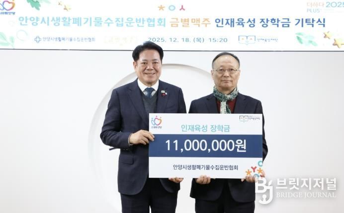 브릿지저널 김경미 기자 | 안양시인재육성재단은 연말을 맞아 지역 기업 및 사회단체의 따뜻한 장학금 기탁 행렬이 이어지고 있다고 22일 밝혔다.