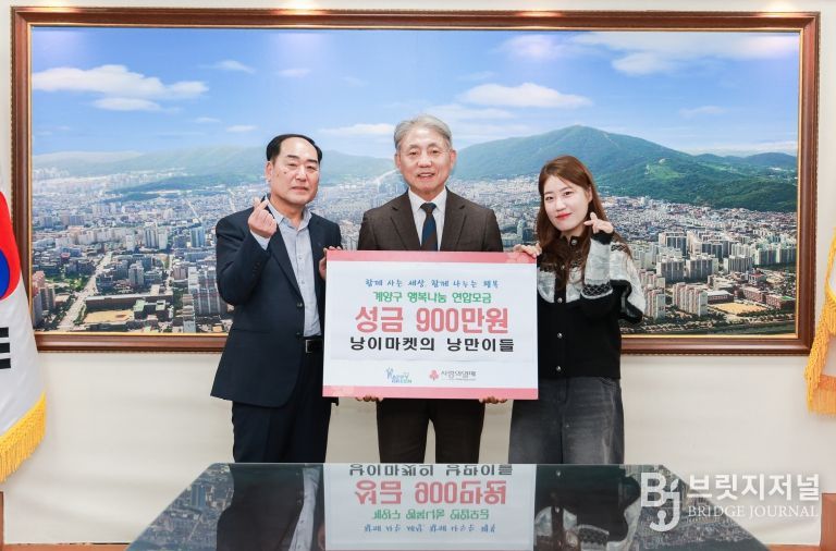 브릿지저널 김경미 기자 | 인천광역시 계양구는 낭이마켓(대표 정수미)이 지역 내 취약계층 지원을 위해 성금 900만 원을 기탁했다고 밝혔다.