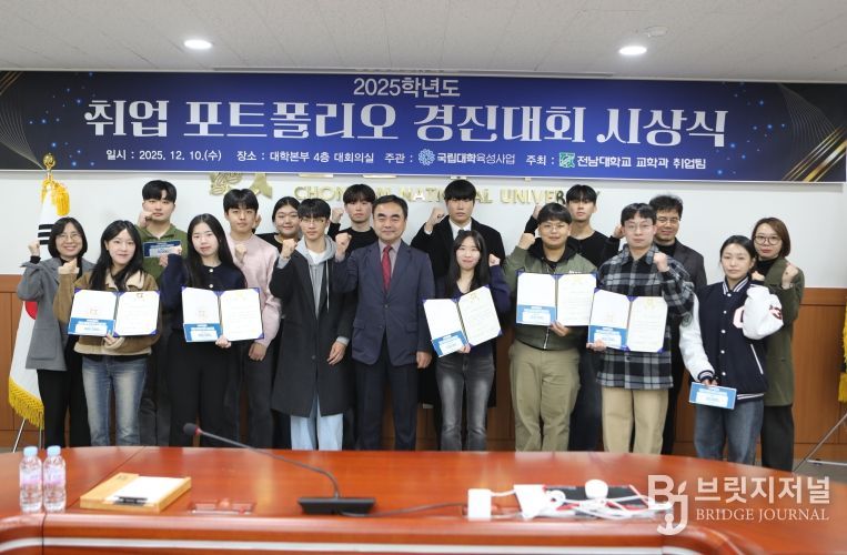 브릿지저널 김경미 기자 | 전남대학교 여수캠퍼스가 재학생들의 체계적인 진로 설계와 실전 취업 역량 강화를 위해 마련한 ‘취업포트폴리오 경진대회’가 학생들의 뜨거운 관심 속에 마무리됐다.