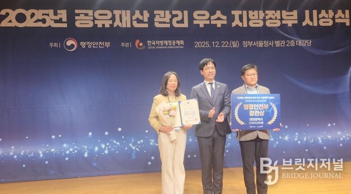 브릿지저널 정보영 기자 | 대전시는 행정안전부 주관‘2025년 공유재산 우수 지자체 시상식’에서 '우수사례 경진대회 부문'행정안전부 장관 기관표창을 수상했다.