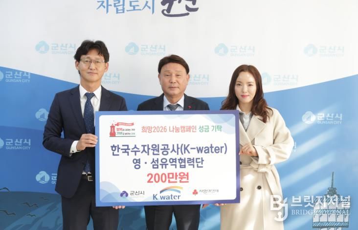 브릿지저널 윤나영 기자 | 한국수자원공사 영·섬유역협력단이 연말을 맞아 취약계층과 따뜻한 정(情)을 나누고자 기부금 200만 원을 22일 군산시에 전달했다.
