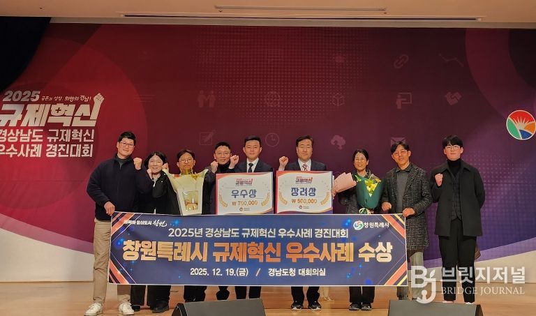 브릿지저널 김경미 기자 | 창원특례시는 19일 경상남도가 주관한 ‘2025년 경상남도 규제혁신 우수사례 경진대회’에서 우수상과 장려상을 각각 수상했다고 밝혔다.