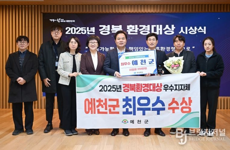 브릿지저널 정보영 기자 | 예천군은 22일 경상북도 주관 ‘2025년 경북환경대상’ 평가에서 최우수상을 수상하며 환경 전반에 걸친 우수한 정책 추진 성과를 인정받았다.