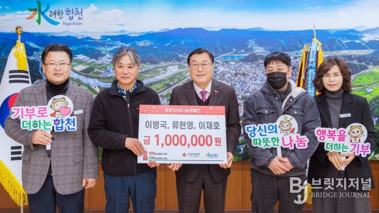 한편 합천군은 2025년 12월 1일부터 2026년 1월 31일까지 희망2026나눔캠페인 이웃돕기 성금 집중 모금 기간을 운영하고 있다. 기탁받은 성금은 경남사회복지공동모금회를 통해 관내 어려운 이웃에 지원할 계획이다. 성금 기탁을 희망하는 분들은 합천군청 주민복지과나 읍면사무소로 연락하면 된다.