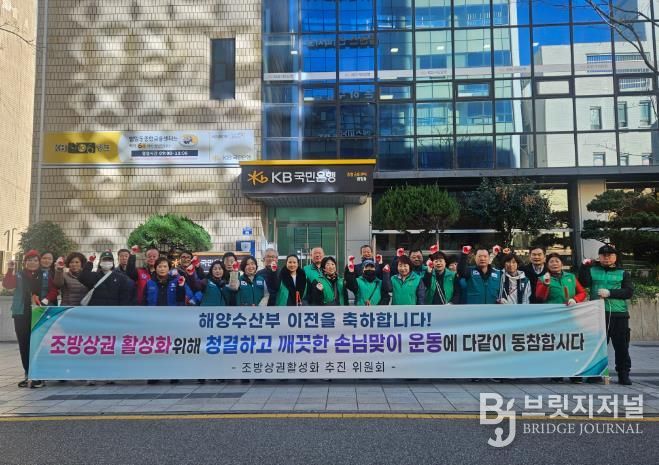 브릿지저널 윤나영 기자 | 부산 동구 범일2동은 지난 12월 18일 해양수산부 임시청사 개청을 앞두고 조방상권 활성화를 위한 손님맞이 도시환경정비를 실시했다.