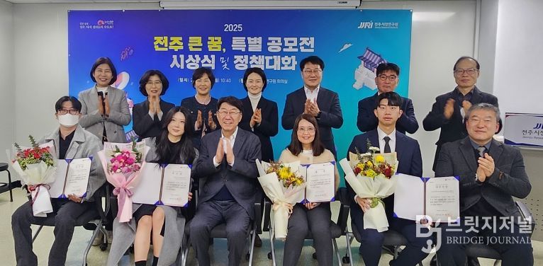 브릿지저널 윤나영 기자 | 전주시정연구원(원장 박미자)은 22일 연구원 회의실에서 ‘2025 전주 큰 꿈 특별 공모전 시상식 및 정책 대화’를 개최했다.