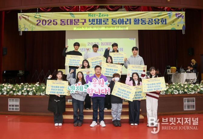 브릿지저널 김경미 기자 | 서울 동대문구가 청소년이 주도하는 탄소중립 실천을 ‘성과 공유’와 ‘확산’으로 이어가는 자리를 마련했다. 동대문구는 지난 20일 관내 초·중·고 학생으로 구성된 넷제로(탄소중립) 동아리가 한자리에 모여 1년간의 활동을 나누는 '2025 넷제로 동아리 활동 공유회'를 열고 행사를 성황리에 마무리했다고 밝혔다.