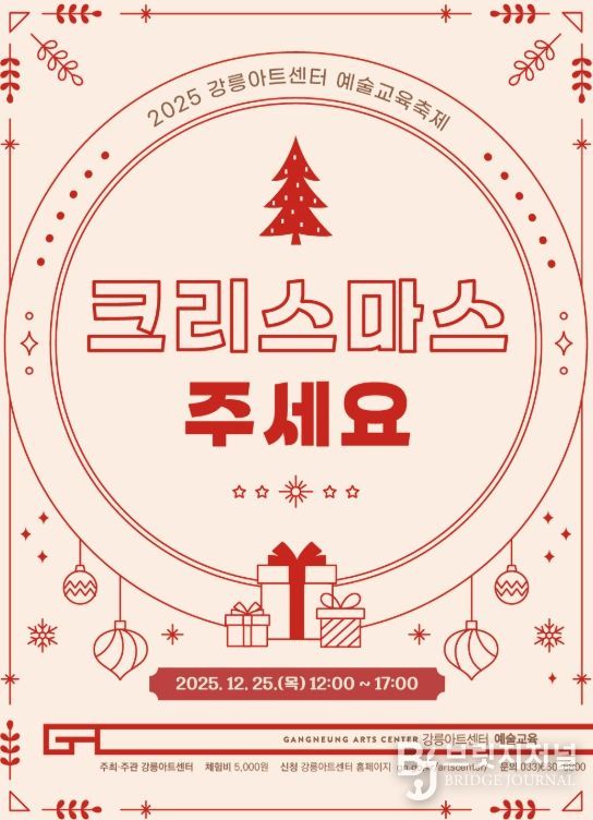 브릿지저널 윤나영 기자 | 강릉아트센터는 연말을 맞아 오는 24일부터 25일까지 이틀간 음악회와 예술체험을 아우르는 연말 문화예술 프로그램을 선보이며 강릉 시민과 방문객들에게 따뜻한 연말의 시간을 선물할 예정이다.
