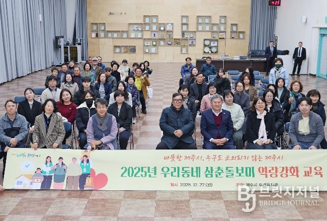 브릿지저널 정보영 기자 | 김완근 제주시장은 22일 시청 1별관 회의실에서 열린 2025년 ‘우리동네 삼춘돌보미’ 역량강화 교육에 참석해 관계자들을 격려했다.