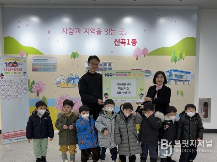 브릿지저널 김경미 기자 | 의정부시 신곡1동주민센터는 12월 22일 신동화나라 어린이집이 연말을 맞아 성금 40만 원을 기부했다고 밝혔다.